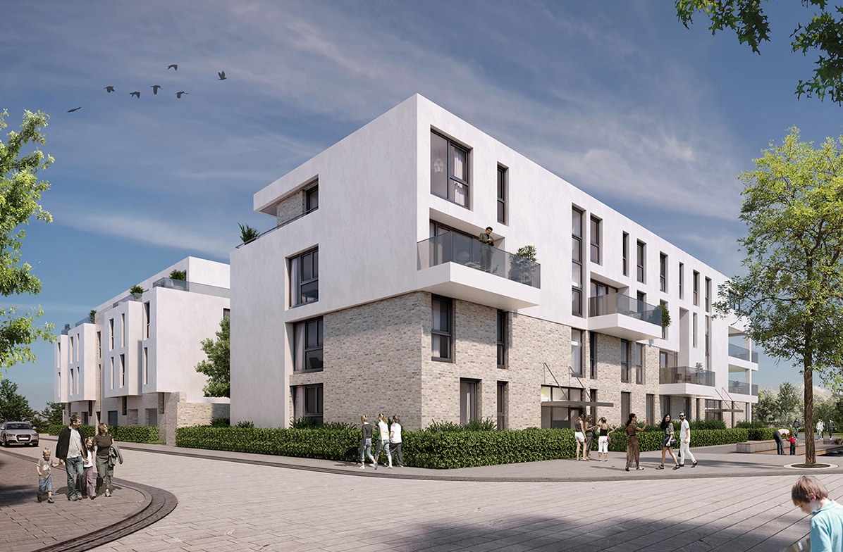 Ein Ensemble aus sechs energieeffizienten Mehrfamilienhäusern mit insgesamt 152 Wohneinheiten.